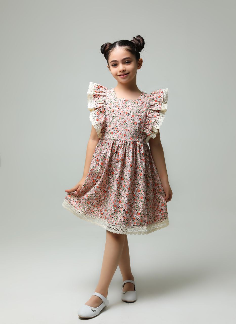 پیراهن دخترانه گل گلی در دورنگ شاد و پرطرفدار سرخابی وکرمی کاملا مناسب بهار و تابستان🌸