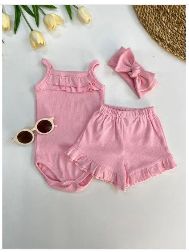 ست بادی(سرهمی) و شورتک دخترانه👧🏻
